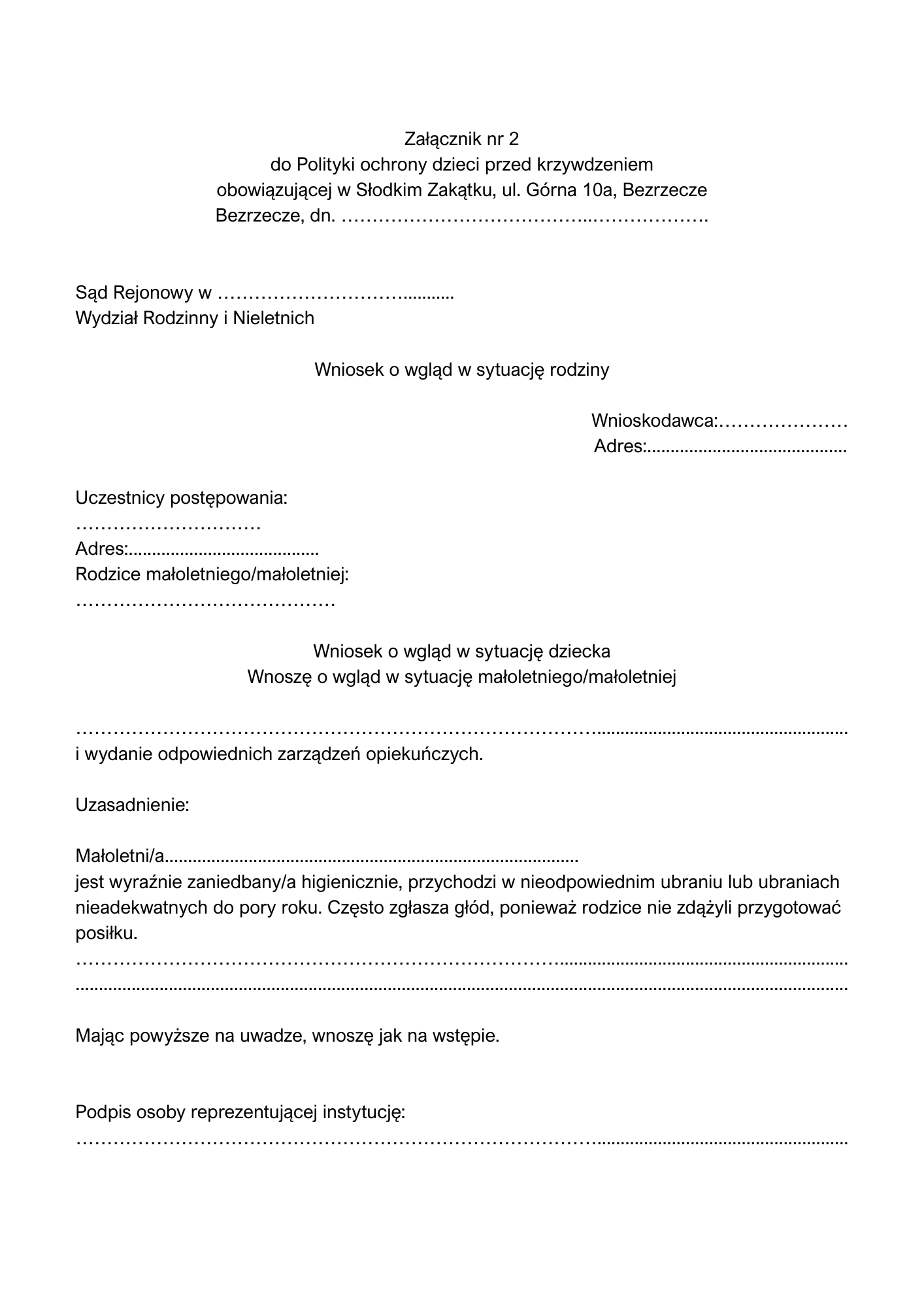 - Jeśli podejrzenie zgłosili rodzice/opiekunowie, powołanie zespołu jest obowiązkowe, a spotkanie z nimi dokumentowane protokołem.
